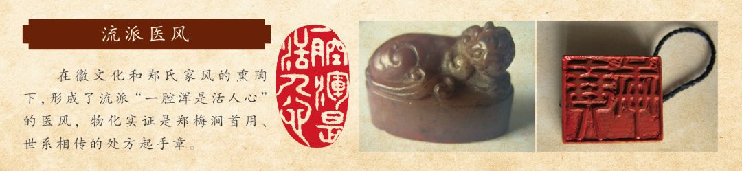 中华优秀传统文化的典型代表--徽文化的熏陶,郑氏喉科形成了"善(善福乡里)、"贞白”(忠贞报国、清白做人)家风。物化实证为家族里门贞白里门坊和郑氏祖祠忠贞祠,其精神内涵得到古今国家层面的议定、褒奖和保护。